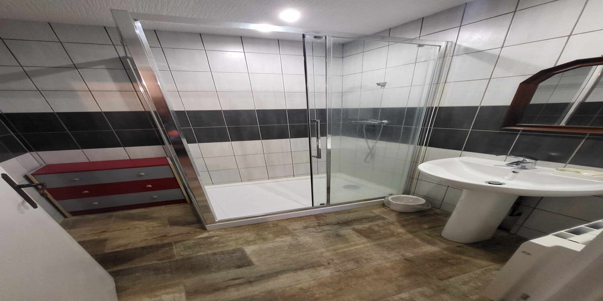 La chambre possède sa salle de bain privative à 50 mètres avec douche avec accès PMR, toilette et lavabo.